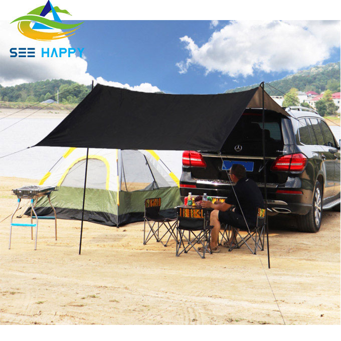 Nosso dossel lateral do carro feito em tecido oxford impermeável, estrutura estável adequada para camping, viagem de carro, festa na praia com a família.