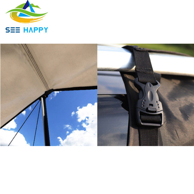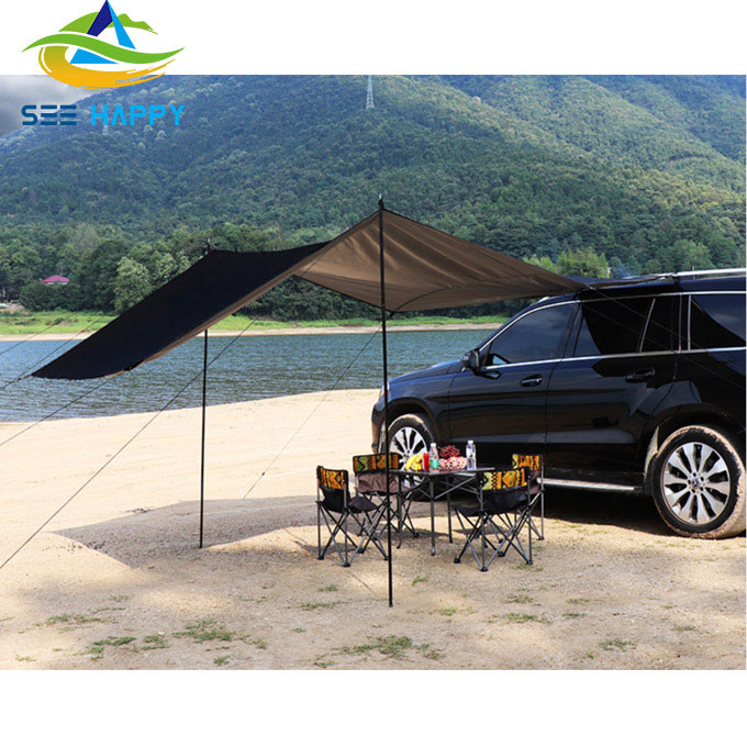 São utilizados 8 pregos moídos, 8m2 e 3m 4 cordas de vento como suporte e moldura. A estrutura é forte e pode suportar fortes ventos e ondas. O dossel lateral do carro é feito de tecido Oxford impermeável com uma estrutura estável, adequado para camping, viagens de carro e festas familiares na praia. A grande área de sombra pode acomodar mesas e cadeiras de camping, permitindo que 2 a 3 adultos desfrutem de momentos relaxantes protegidos do vento, sol e chuva. O Car Side Canopy também possui uma cerca de privacidade especialmente personalizada que permite obter melhor privacidade. Este toldo também é portátil e rápido de instalar, podendo ser facilmente instalado e fixado na lateral do veículo, tornando-o muito prático em viagens longas e acampamentos. Pode ser rapidamente implantado quando necessário, sem ocupar espaço prático no veículo, tal como o seu espaço exterior móvel. O Car Side Canopy é um guarda-sol para automóveis muito prático e de alta qualidade. É leve, portátil, à prova de vento e de sol. É adequado para uso em diversas atividades ao ar livre. Também tem as vantagens da beleza e da personalização especial. Pode proporcionar proteção mais abrangente e melhor conforto ao veículo, sendo um dos equipamentos essenciais para viagens de longa distância e atividades ao ar livre.