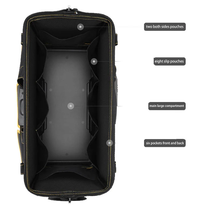 Mala de ferramentas compacta boca larga a abertura facilita o carregamento de ferramentas maiores